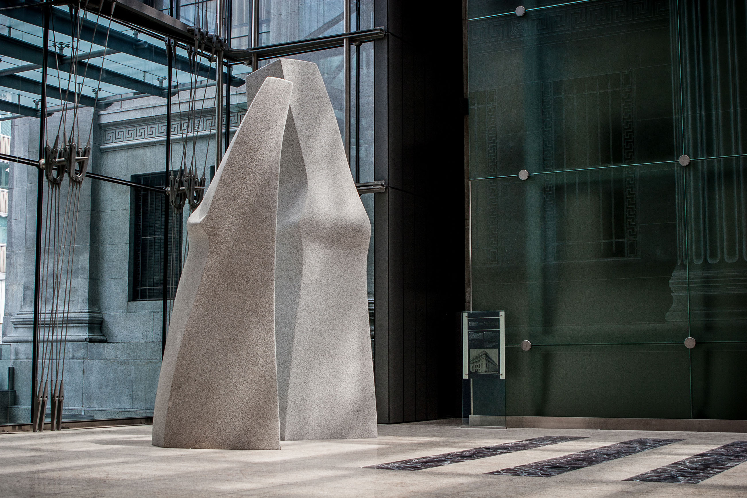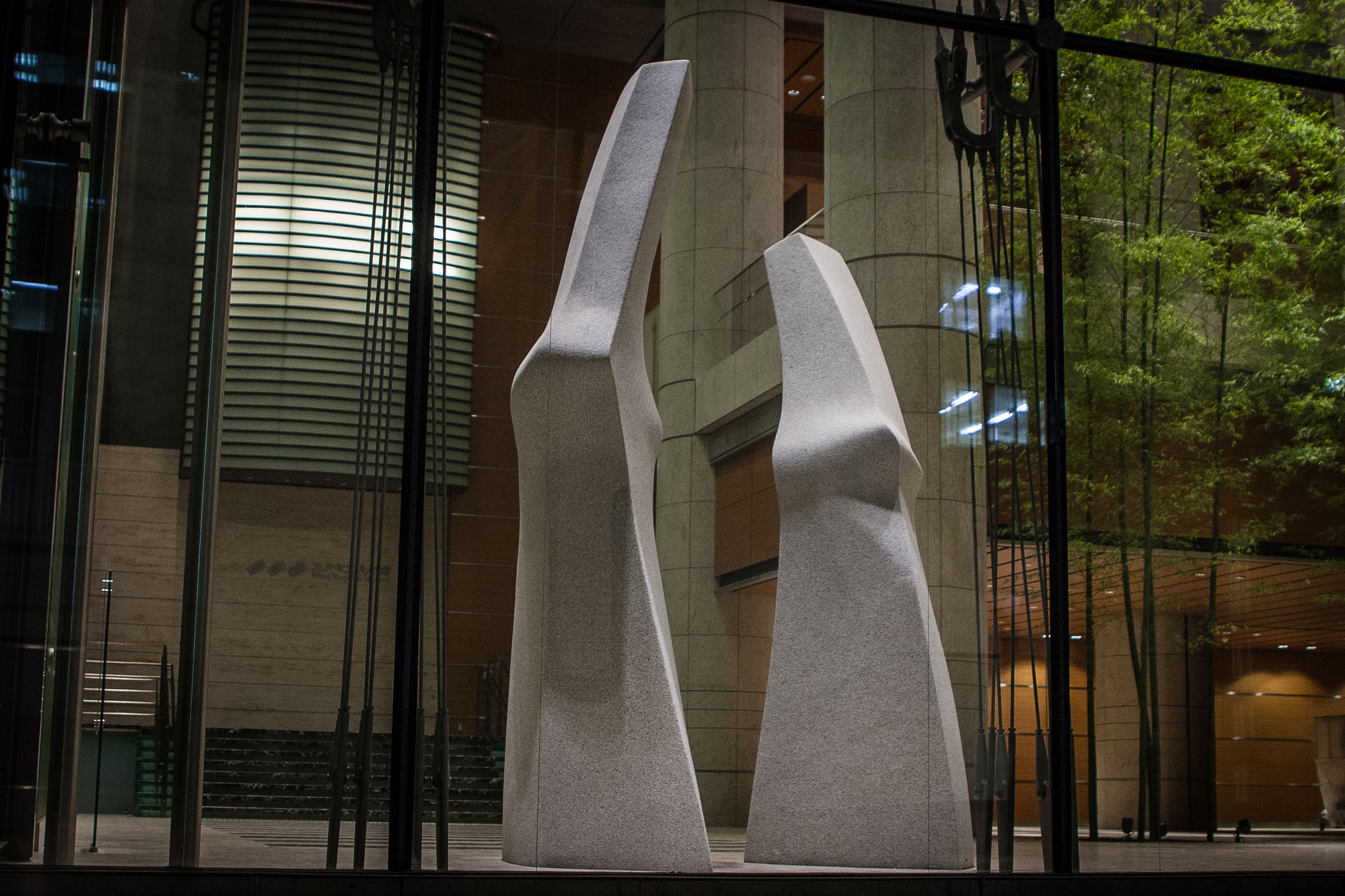 The artists’ intention was to honor the revitalization of the Nihonbashi area of Tokyo and the history of the Mitsui group whose headquarters are located there. The sculpture expresses restrained vitality and the paradox that freedom and change are themselves aspects of tradition.