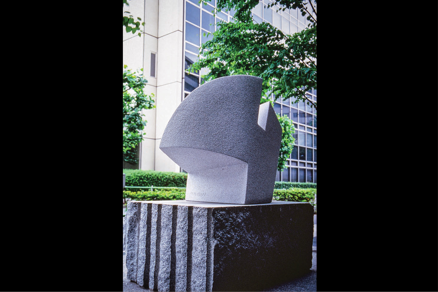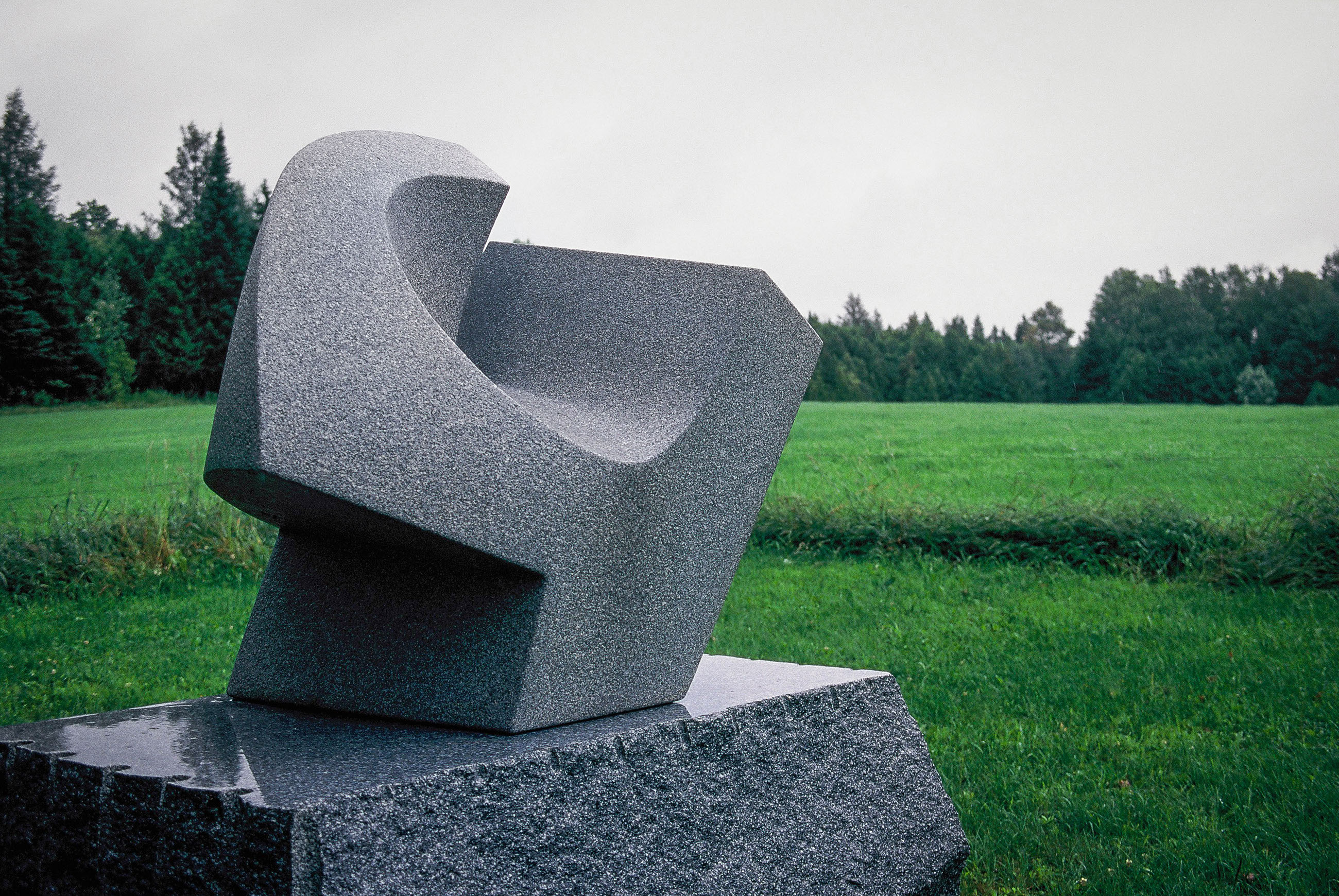 With a shape suggestive of an upward reaching movement, like a raven taking flight or a hand reaching for the sun, the sculpture catches the changing light of the day, linking sky and earth.