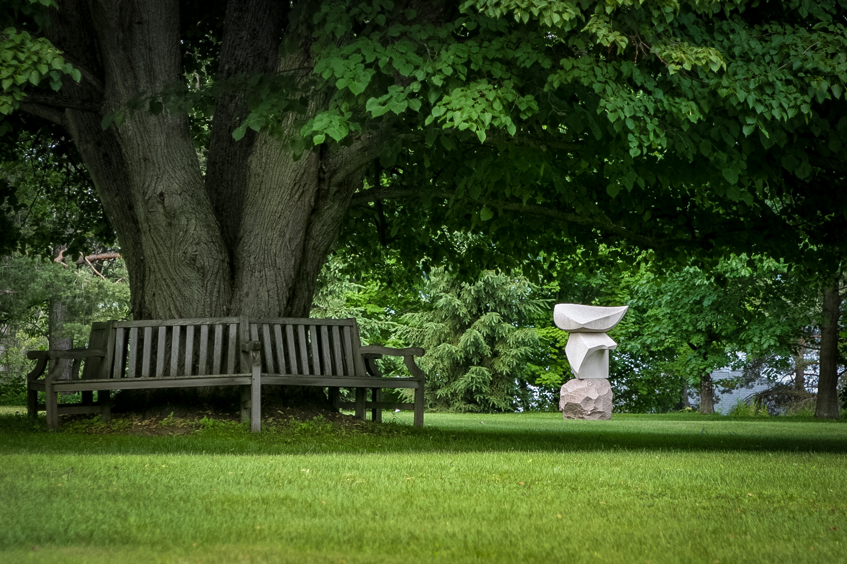 “I said, ‘Satoshi, why is this piece on top of that piece, on top of something else?’ And he spoke of the shape of the leaf as it falls to the ground. The dynamic lightness of a leaf, in the gravity of granite” (D.G. Jones, 1997).